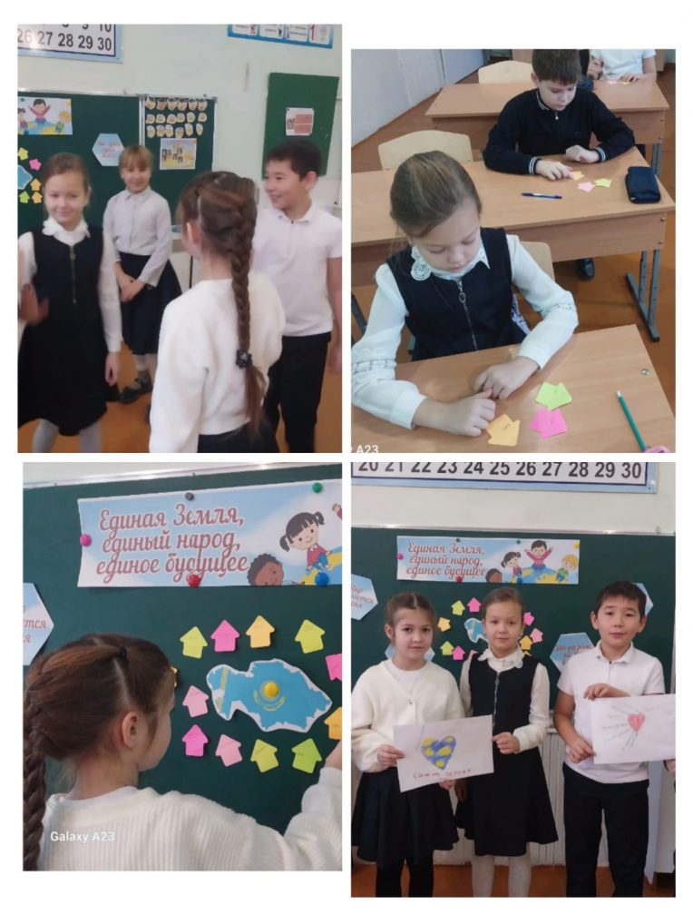 Веденовка ауылының жалпы білім беретін мектебінде 4 сынып мұғалімі Кокурова Динара Ерменқызы "бір жер, бір халық, бір болашақ"тақырыбында сынып сағатын өткізді