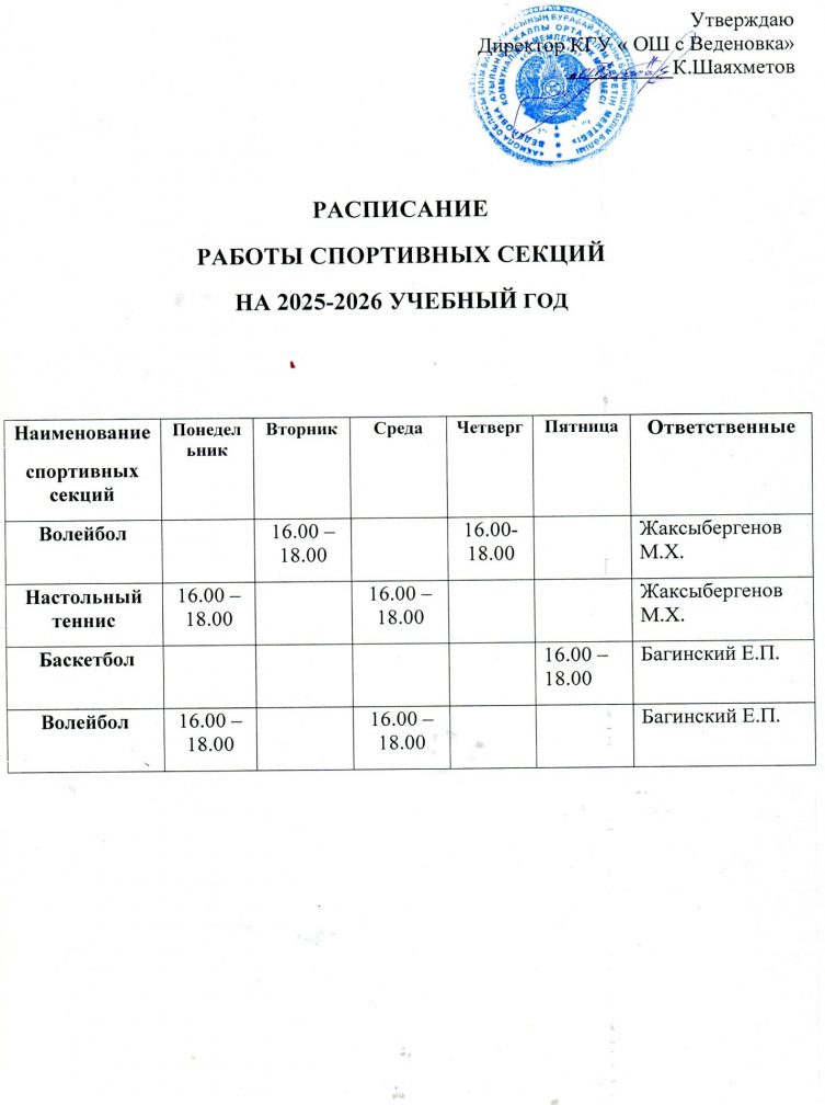 Спорт секцияларының кестесі 2025-2026 оқу жылы