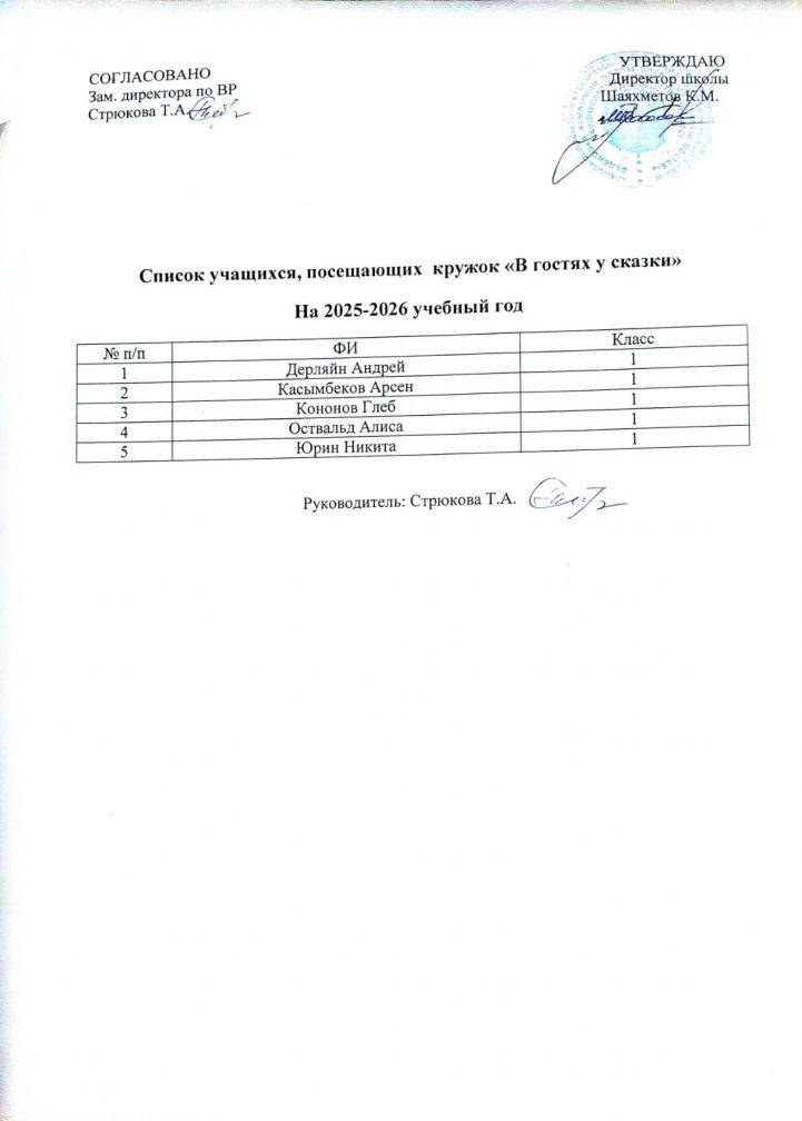 "Ертегіге бару" үйірмесіне қатысатын оқушылардың тізімі. 2025-2026 оқу жылы.